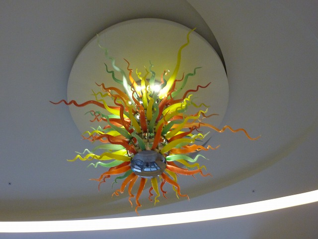 フロントとロビー。ちょっと岡本太郎さんの作品を連想するようなアーティスティックなライト。