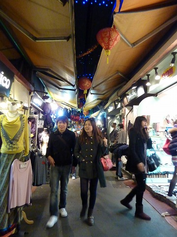 屋台や旬のファッション、チープ雑貨のお店が立ち並ぶ路地を30分ほど散策しました。