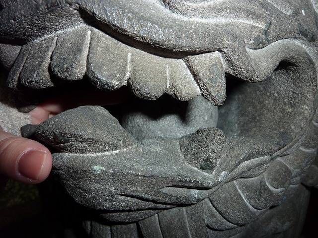 向かって右の狛犬さんの口の中に玉はありませんでした。