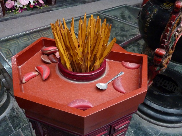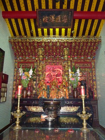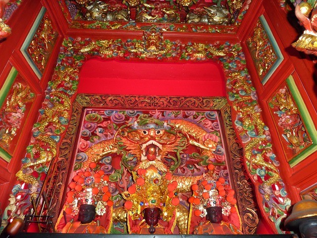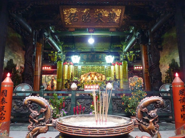 晋徳宮の中はとても鮮やかな赤で彩られていました。心静かにお参りします。
