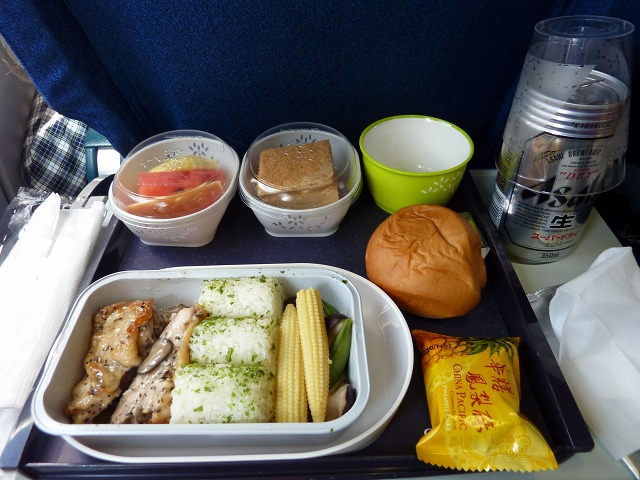 成田空港行き機内食はチキンとライスで。