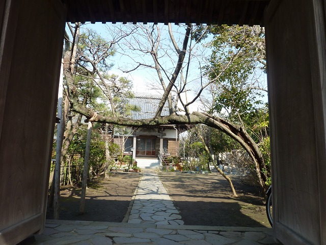 山門を潜ると、横一文字に延びた梅の木があります。