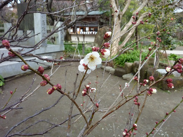 荏柄天神社も梅の名所として知られていますが、やはり少し淋しい感じでした。