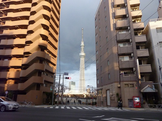浅草寺東参道から隅田公園と東京スカイツリーを望む。