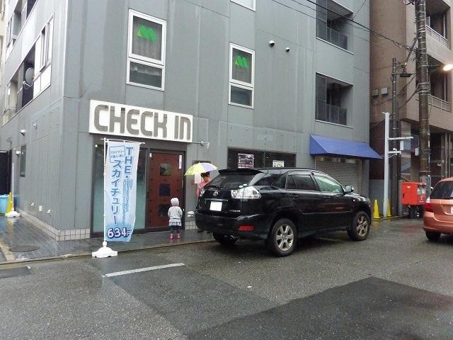 (写真左)団体予約で一緒にスカイツリーに昇る40人が最寄のお店「CHECK IN(チェックイン)」に大集合。