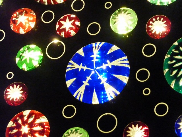 (写真右)江戸切子で花火の模様を描いています。