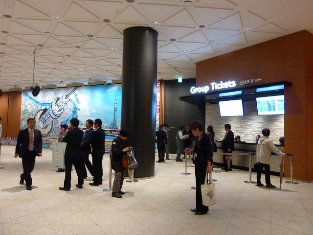 1Fの団体チケットカウンターで第1展望台・天望デッキへの入場券40人分を購入します。