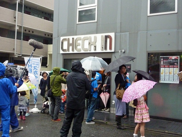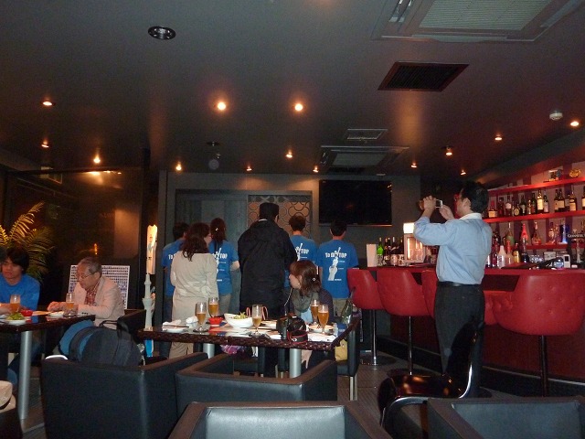21時。集合場所の「CHECK IN(チェックイン)」に戻って、スカイツリー開業を祝う「打ち上げ会」