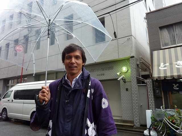 17時25分。いよいよ出発。最寄のスカイツリーまで徒歩2分ほど。傘を挿しての大移動です。