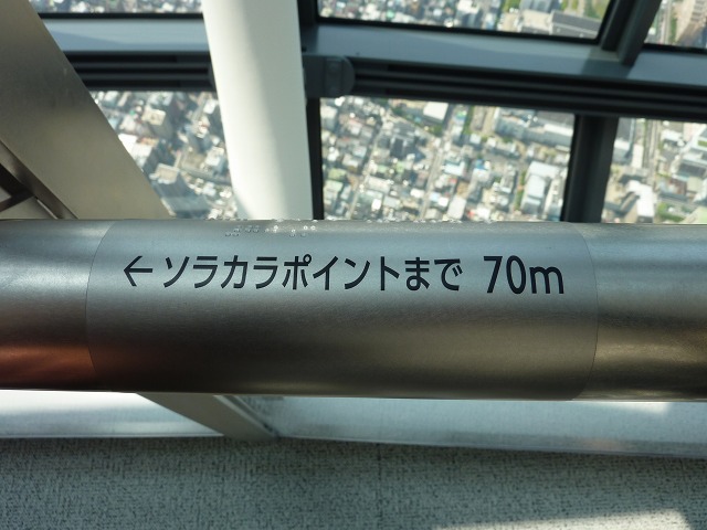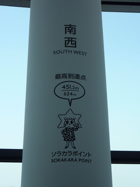 (写真中)エレベーターを降りて、「ソラカラポイント」という最高到達点(451.2m/634m)まで、