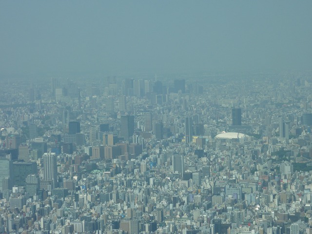 (写真左)中央にうっすら東京タワー。(写真中)東京ドーム。(写真右)上野の森。