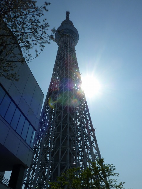 いま昇ってきたスカイツリーと陽光のコラボです。