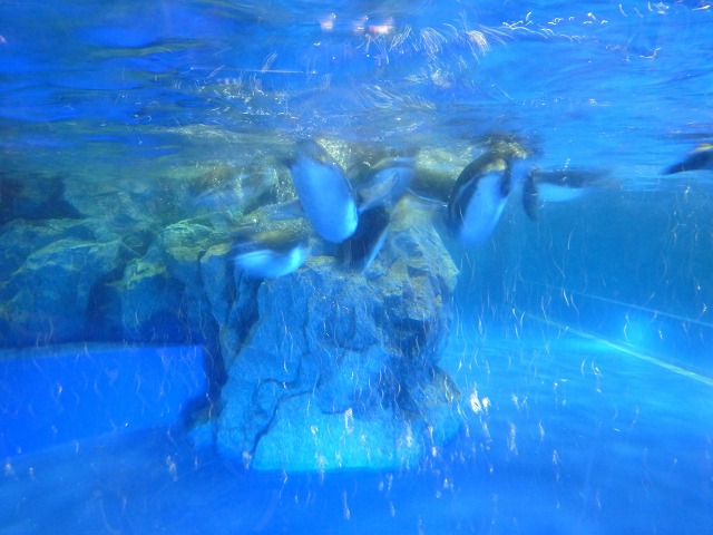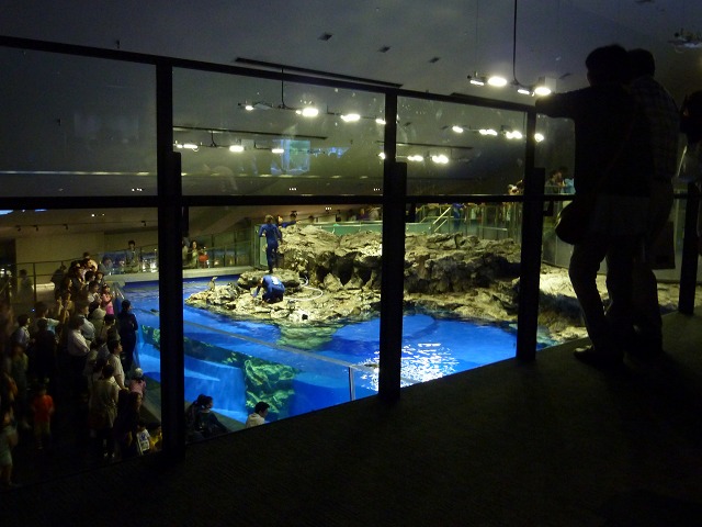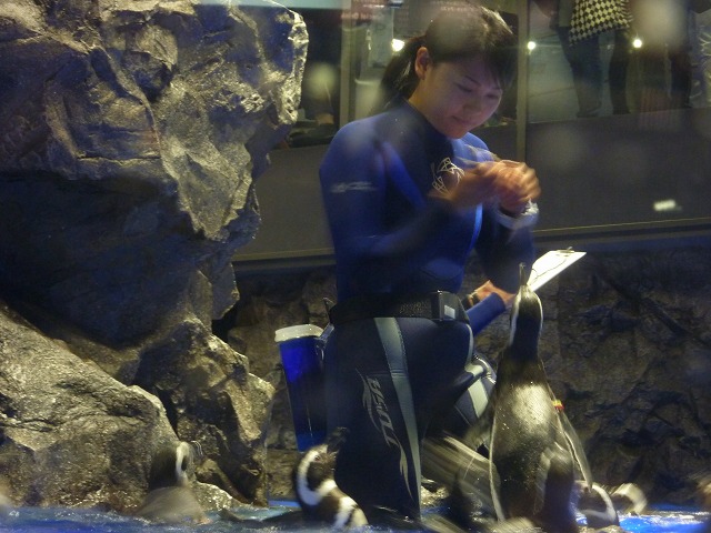 こちらはエサやりタイム。お姉さんにおねだりするコ、1尾の魚(エサ)を巡って争奪戦が激しい。