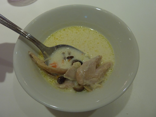 「マンハッタン クラムチャウダー」と、写真の「チキンと野菜のフリカッセ」は具だくさん。
