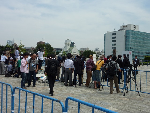 「脱原発」グループの周りに報道陣などの人だかりができていました。