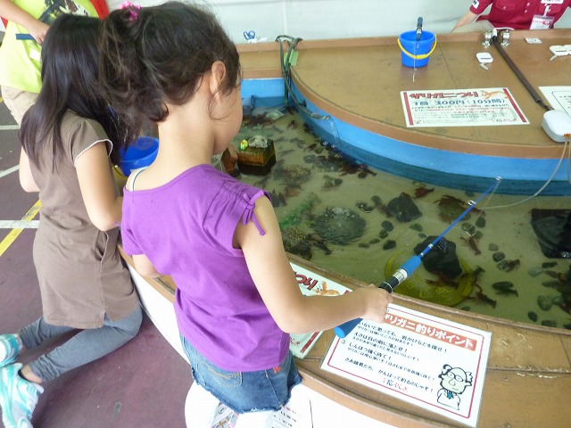(写真左)こちらは「ザリガニつり」のコーナーです。