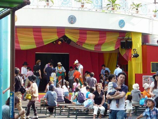 ステージのショー。最後はみんなステージに上がってベーゴマ大会