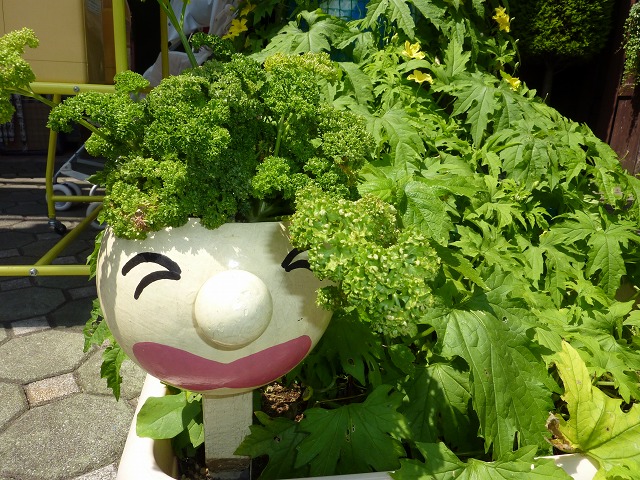 「緑のカーテン」=レイシ(ゴーヤ)の横にはなぜか「パセリ」の植え込みが…。パーマヘア