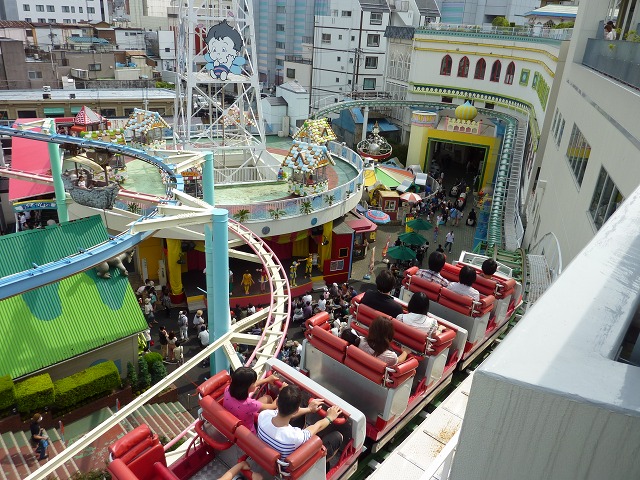 (写真左)本当に狭い敷地にアトラクションをギューッと詰め込んだような「花やしき」。