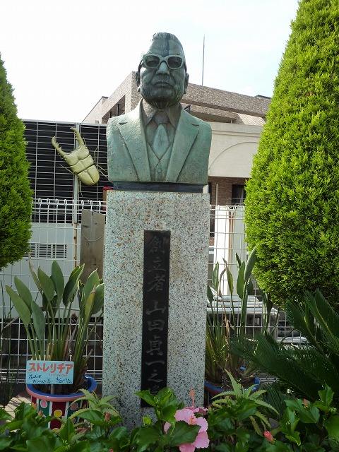 (写真中)そんな「花やしき」の創立者。山田貞一サンの銅像。