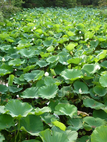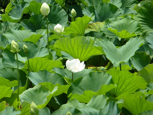 涼しげな【平家池】の白いハス…蕾がたくさん出ていました。