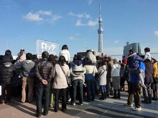 13時30分〜。東京スカイツリーのビューポイントでもある屋上の「浅草ハレテラス」で、