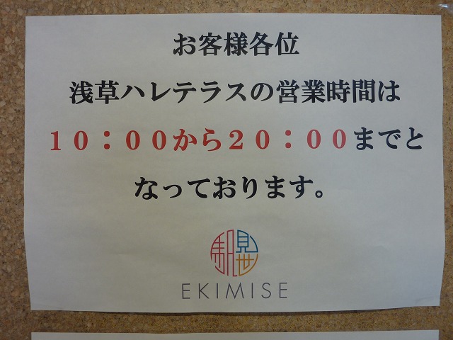 最後に「浅草ハレテラス」の営業時間は10時〜20時です。
