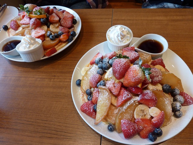 オーダーは2名がおのおの「たっぷりフルーツのカイラ・オリジナル・パンケーキ(トッピング全部のせ) 1,700円 。