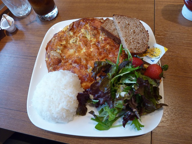 こちらはミート&チーズオムレツ、それにフリタータ(←ライスと発芽玄米パン)