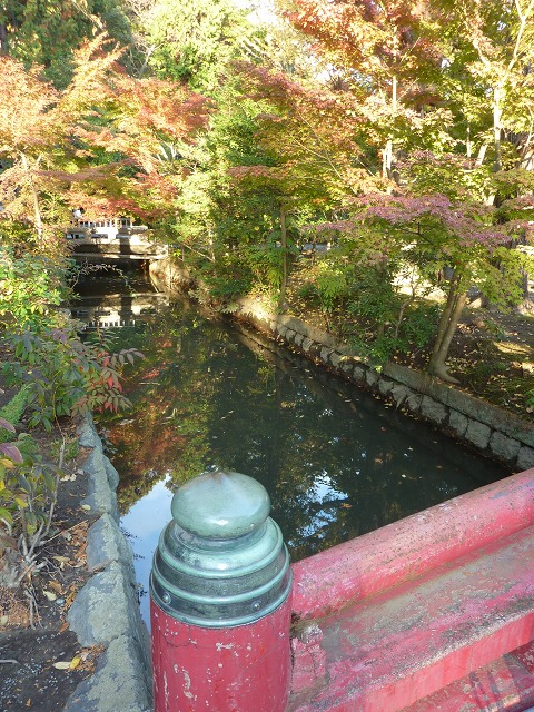 国宝館の周辺は紅葉が見頃になっていて、参詣者がカメラを向けていました。