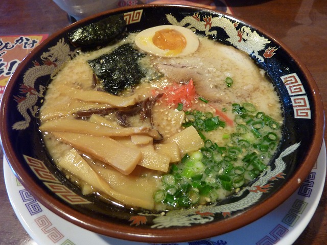 「おおぎやラーメン」でとんこつラーメン、煮たまごプラス。