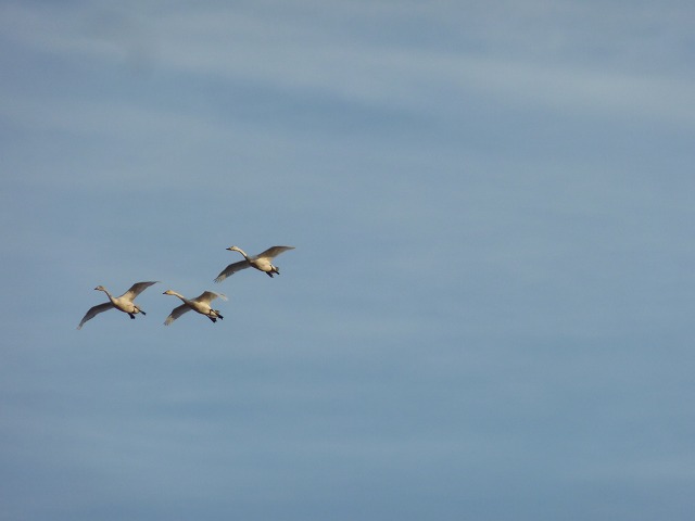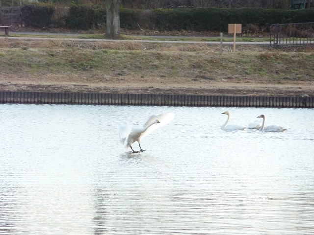 なんといっても圧巻は、空を飛んでやすらぎの池にやって来る白鳥たち。可愛い