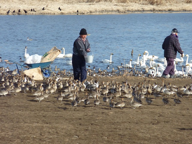 さて、ガバ沼に戻って白鳥のエサやりタイムを見学。