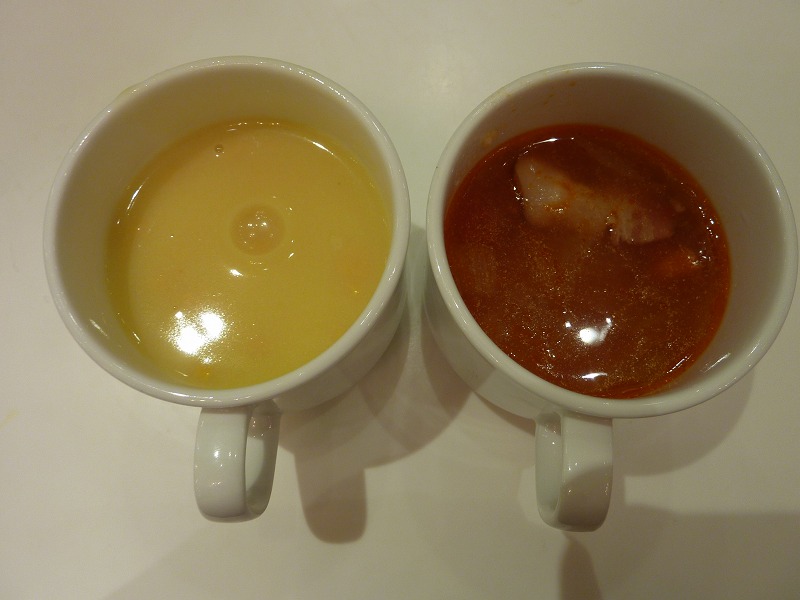 本日のスープはコーンスープとミネストローネ。