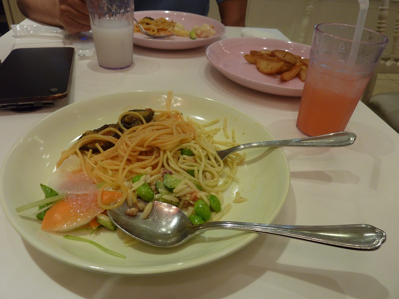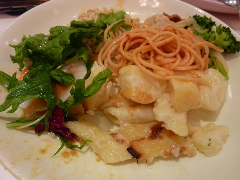 お腹ペコペコなので、まずはパスタやサラダからいただきます。