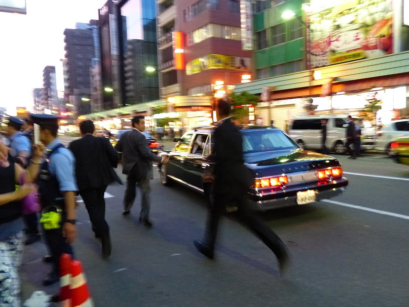 手を振る安倍さんを乗せて走り去る車。次の目的地は秋葉原。