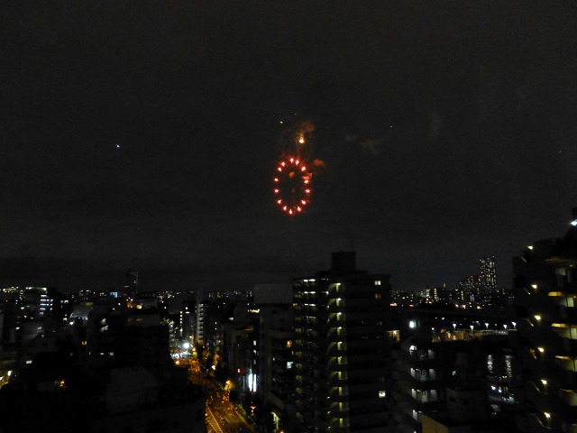 開始後15分ほどで、2020年の東京五輪招致を祈願する5色の花火が打ち上げられました。