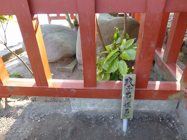 こちらは旗上弁財天社と「政子石」です。良縁・安産祈願に吉とか。