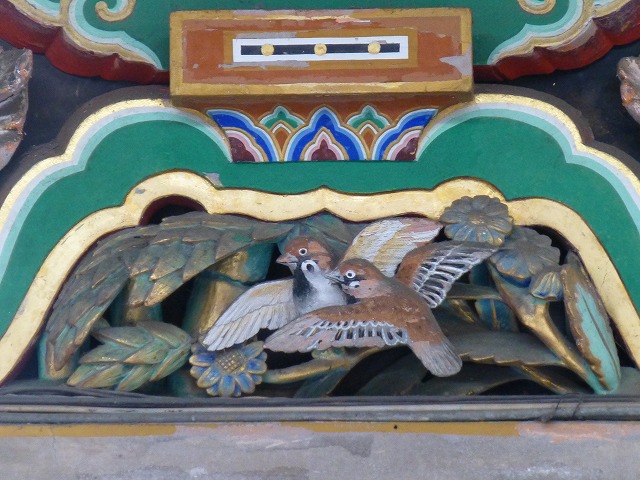 柱には唐木の寄木細工で昇竜と降龍の彫刻があり、屋根には鰭切れの龍(昼の守)とつつが(けもの篇に恙)(夜の守)が飾られています。