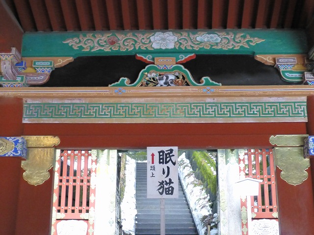 東回廊の奥社参道入り口に有名な左甚五郎「眠り猫」。