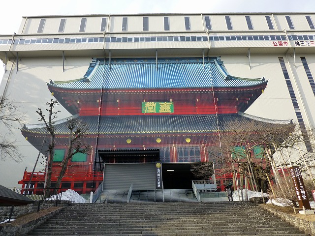 同輪王寺の「三仏堂」の修理見学施設に行ってみましたが、