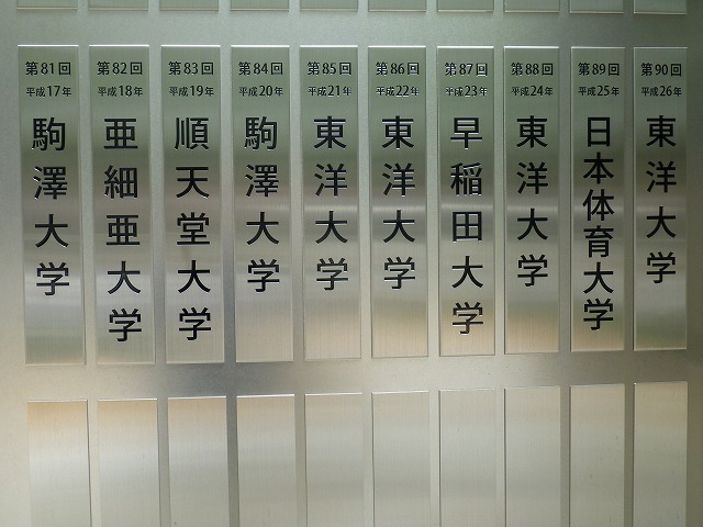 歴代優勝校がズラリ。近年は東洋大学が強いんですね。今年も優勝は東洋大学でした。
