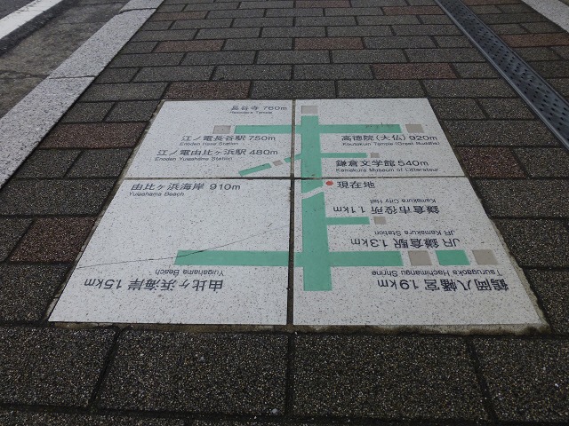 JR鎌倉駅西口から徒歩で由比ガ浜大通りに出て長谷方面へ。