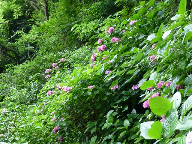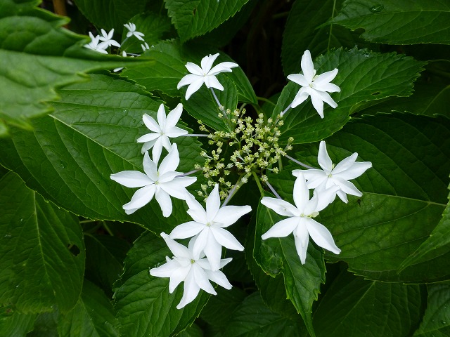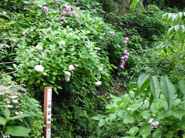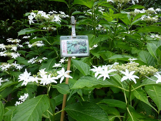 それから、庚申塔群の近くのガクアジサイ「八丈千鳥」もたいへん綺麗でした。