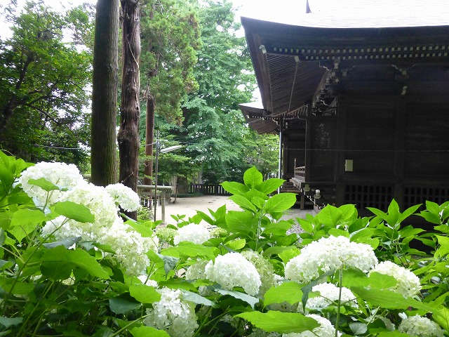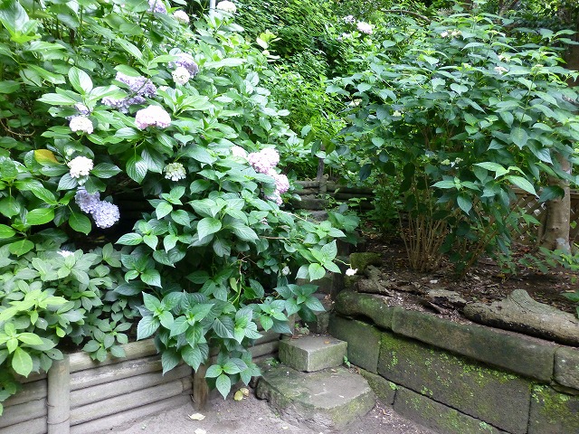 比較的新しいアジサイの名所「紫陽花小園」は本殿の背後です。