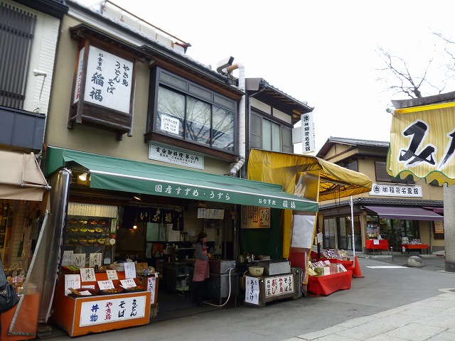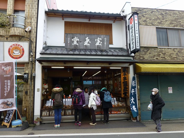 (写真右)途中、「稲荷煎餅発祥 宝玉堂」が。中国人の女の子たちがお買い物中。