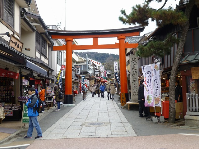 伏見稲荷の裏参道の入口に立つ「鳥居」が左手に見えてきました。