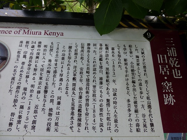 これまでは気づくことがなかったのですが、「三浦乾也旧居・窯跡」とあります。