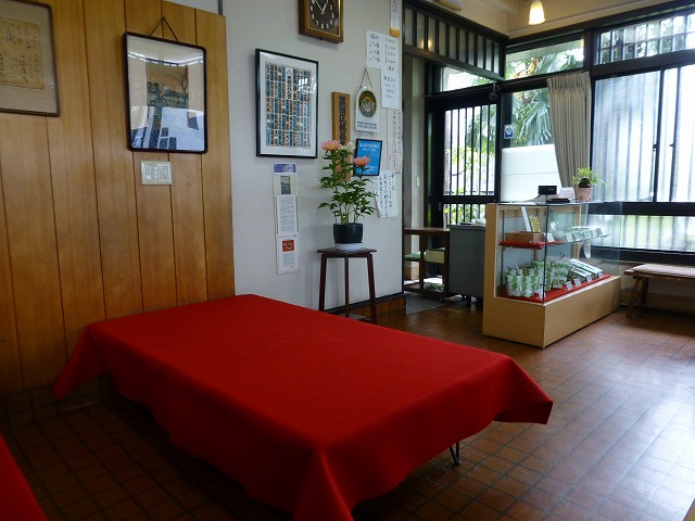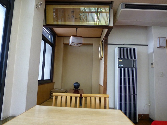 お店の中にはテーブル席と赤い毛氈を敷いた椅子席、畳の席(見やすい画像はコチラを参照)があり。