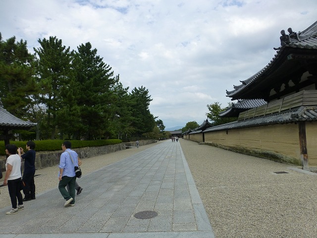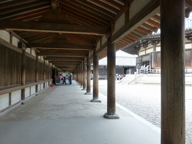 回廊は東側の鐘楼、中央の大講堂、西側の経蔵につながり、西院伽藍を形造っています。